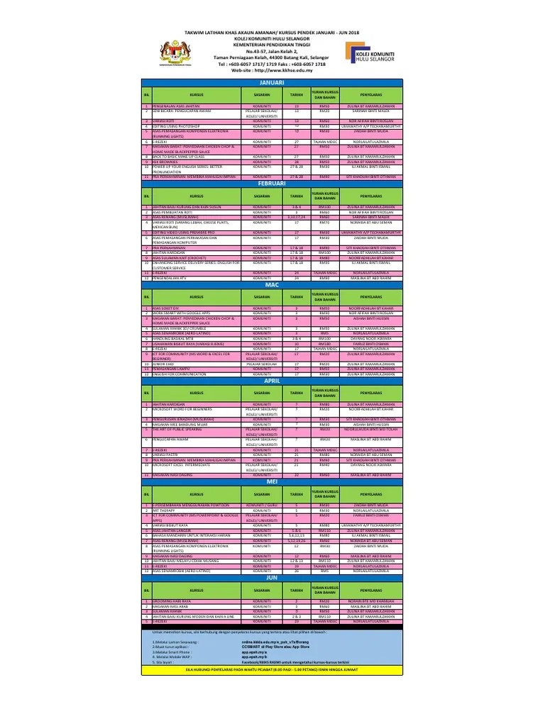 Jabatan Pertanian Negeri Perak Syarahan Latihan Amali Perbincangan Dan Lawatan Ke Projek Berjaya Kursus Asas Semaian Teknologi Pembiakan Pokok Lelaki Perempuan 18 20 April Pdf Document from reader018.staticloud.net Borang pendaftaran kursus jangka pendek. Kursus lasagna meatball dan lasagna ayam (8 jam) tenaga pengajar : Borang permohonan ini adalah permohonan sepanjang tahun. Kursus jangka pendek di ilp selandar tahun 2017/2018. Pihak institut kini telah menyediakan kemudahan di mana peserta kursus boleh memohon kursus jangka pendek secara atas talian. Oleh zenzen zainudhindiposting pada 8 oktober 2016. Fungsi kapur pertanian memberikan keuntungan bagi para petani, untuk menyeimbangkan ph tanah dengan cara yang sederhana serta biaya yang murah. Senarai kursus jangka pendek bagi tahun 2020.