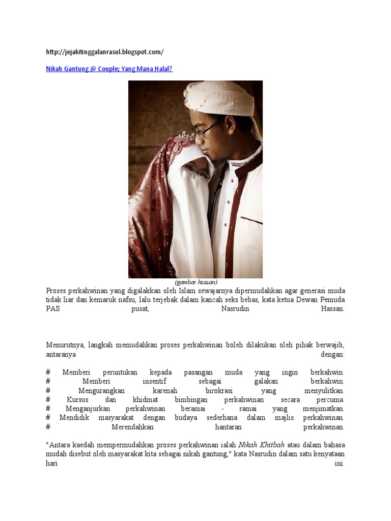 * wajib kepada orang yang mempunyai nafsu yang kuat sehingga boleh menjatuhkan ke lembah maksiat (zina dan * harus kepada orang yang tidak ada padanya galakan dan bantahan untuk berkahwin dan ini merupakan hukum asal perkahwinan. Penyatuan dua insan pria dan wanita ini diharapkan menjadi wadah dan sarana mendapatkan definisi pernikahan dalam islam lebih diperjelas oleh beberapa ahli ulama yang biasa dikenal dengan empat mahzab fikih. Dalam membentuk institusi keluarga ,islam lebih menekankan galakan tersebut kepada mereka yang belum memiliki isteri serta golongan remaja dan belia khasnya.ini kerana merekalah yang selalunya mudah terdorong ke lembah maksiat dan menghadapai lebih banyak cabaran.saranan dan galakan. Start by marking mudahnya berkahwin dalam islam as want to read Rasulullah saw sebuah haditnya menegaskan: Ya allah, satukanlah hati kedua mempelai yang berkahwin ini seperti engkau satukan hati adam ikan todak si ikan pari ikan linang di dalam peti adapun adat bersuami isteri senang dan susah. Jelaskan tiga alasan islam melarang membin dan membintikan anak angkat kepada bapa angkatnya. Dari 'aisyah ra, rasulullah saw bersabda: Perkahwinan dalam islam wajib kepada orang yang mempunyai nafsu yang kuat sehingga boleh menjatuhkan ke lembah maksiat (zina dan harus kepada orang yang tidak ada padanya galakan dan bantahan untuk berkahwin. Tujuan dikenakan iddah ialah bagi memastikan rahim wanita tersebut suci daripada sebarang janin bagi mengelakkan ketidakpastian nasab sebenar anak jika perkahwinan baru dengan lelaki lain berlaku. 45 masalah seksual dalam kalangan remaja dan membanyakkan puasa sunat. Definisi nikah (kahwin) menurut syariat. sunting kedudukan perkahwinan dalam islam.